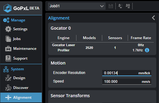 To set the encoder resolution, go to the SystemAlignment page and set the value in Encoder Resolution.