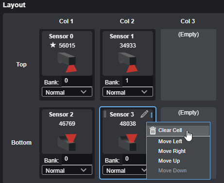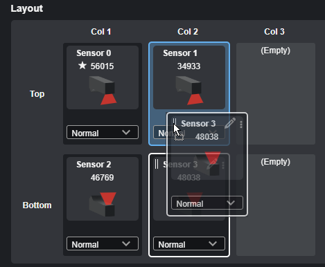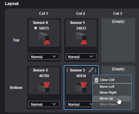 | 4. | (Optional) If you need to reorganize the sensors in the layout, you can hover over a sensor in a grid cell and do one of the following: |