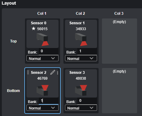 | 2. | Set the values in the Bank fields to assign sensors to the desired banks. |
