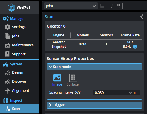 To view Image data, you must set the system to Image mode before scanning, in the Acquire > Scan page > Scan Mode section.