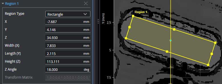Note that the angles defining a partial circular/elliptical region are relative to the region, and not the sensor's coordinate system. So a region rotated 30 degrees using its Z Angle setting rotates the start angle and angle range by 30 degrees.
