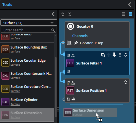 You can also search for tools by typing in the search field. Tools are listed as you type.