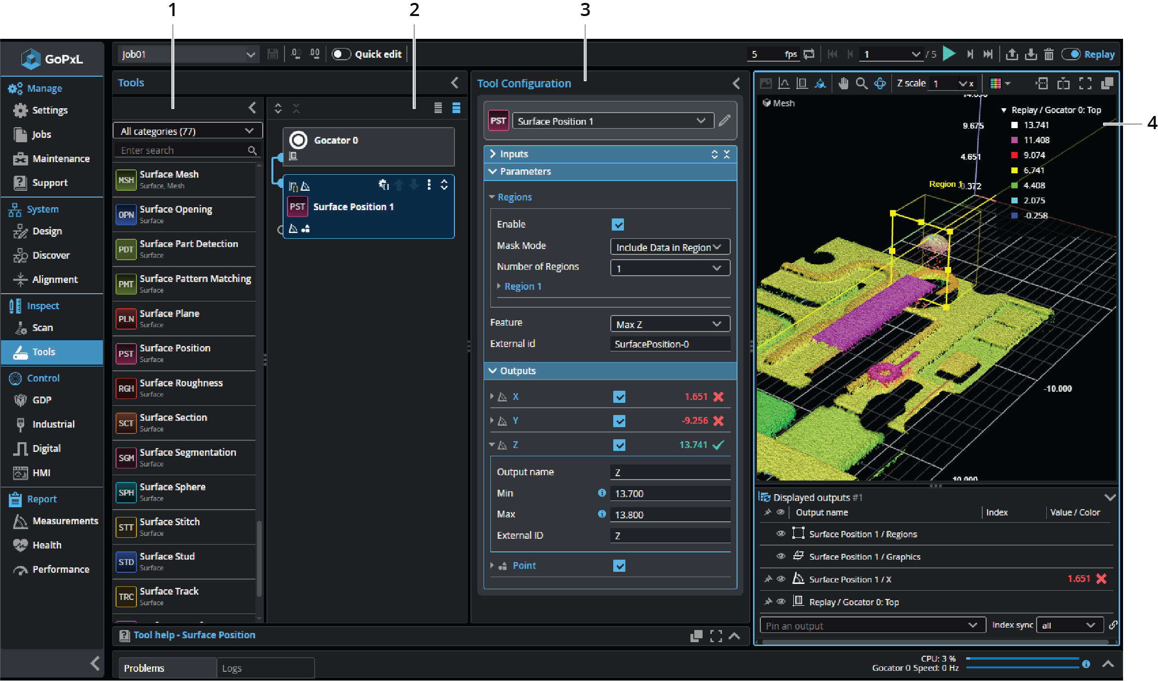 You add and configure measurement and processing tools on the Tools page, in the Inspect category.