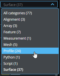 For information on parameters common to most tools, see Tool Configuration. For information on the different types of tools, see their topics in the following sections. Profile tools: See Profile Measurement. Surface tools: See Surface Measurement. Feature tools: See Feature Measurement. Mesh tools: See Mesh Measurement. Array tools: See Array Tools. Measurement Formula tool: See Measurement Formula Tool. Script tool: See Script. Data Export tool: Data Export. |