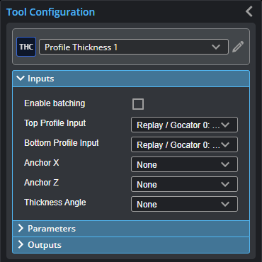 The top and bottom profiles the tool uses to perform thickness measurements. If Enable Batching is checked, each input takes an array. |