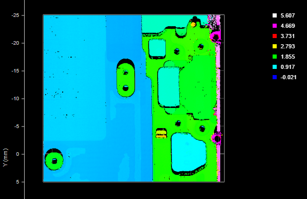 The Stitch tool lets you combine up to 24 frames of scans into a single Surface scan. This lets you get a much larger scan volume with fewer sensors (either in a single sensor system or a multi-sensor system). For each scan, you can specify not only X, Y, and Z offsets (translations), but also X, Y, and Z angles (rotations), defining its relationship with the others. This means that when the sensor system is mounted to a robot, or if you are using, for example, an X-Y table, you can get a complete scan with fewer sensors. The resulting combined scan can then be used as input by any other Surface or Feature tool from its Surface Input drop-down.