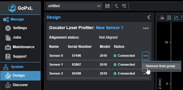 | 3. | With multi-sensor G2 systems, click the three dots menu ( ) in the row containing the sensor you want to remove, and click Remove from group. |