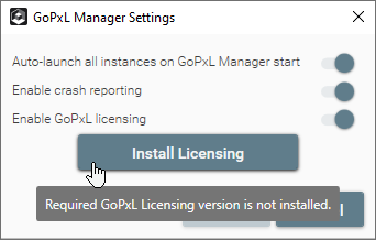 | 4. | In GoPxL Manager Settings, if licensing isn't already enabled enable it. |