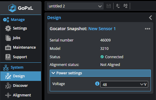 | 1. | In the GoPxL interface of the PC instance, go to the System > Design page. |