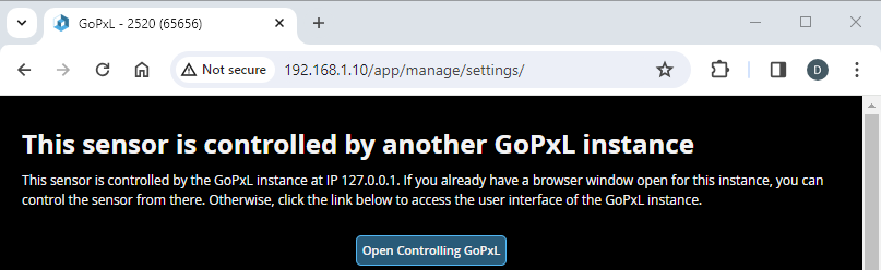 GoPxL Manager creates a local, PC-based instance of GoPxL and launches it in a new tab in your default browser, using IP address 127.0.0.1.