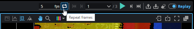 | 3. | Use the replay controls above the data viewer to move through the frames, go to a specific frame, toggle and configure the speed of repeat frames mode (continuous loop), and so on. |