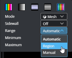 For Heightmap, Grayscale, and Heightmap + Intensity settings, you can set the range values that map to the heightmap colors (using the Range drop-down and the related settings) to make features easier to see.