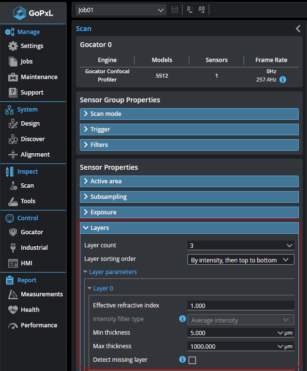 You configure layers on the Inspect > Scan page.
