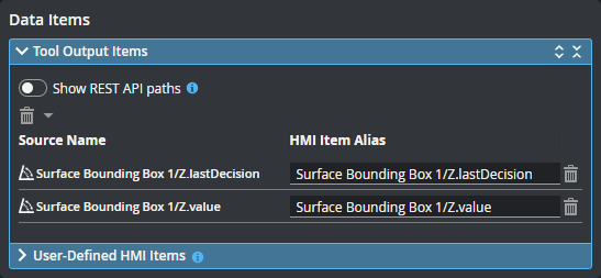 The data listed here will be sent to the running HMI app. For more information, see Data Items. |