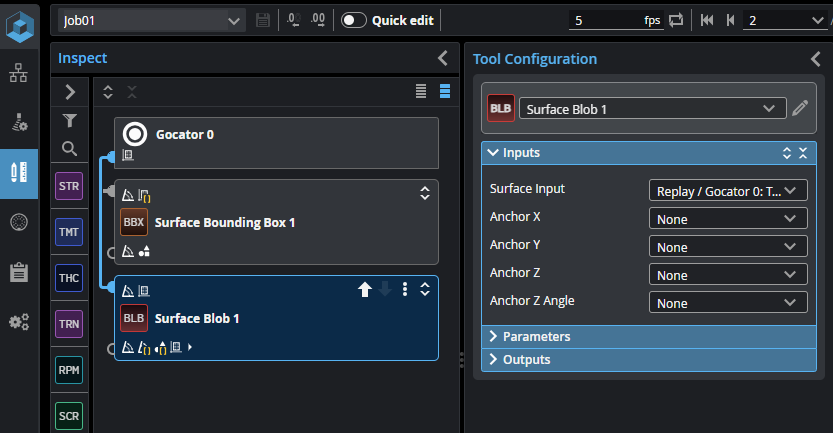 When the tool's Enable Array Output setting is checked, the Surface Blob tool outputs an array containing all of the blobs it identifies.