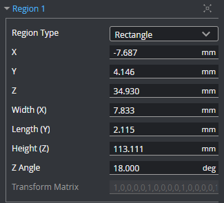 These parameters define the size, location (center of the region), and orientation of the region. Not available when Region