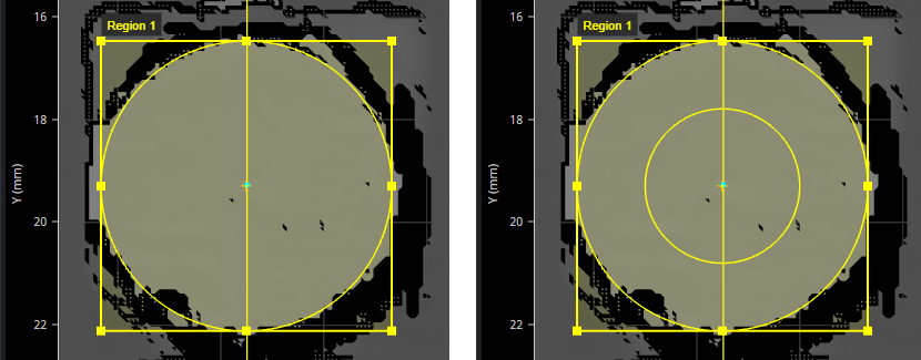 When you set a region type to Ellipse, instead of the inner circle diameter, you must set the major and minor axes of the inner ellipse.
