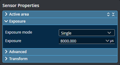 You configure exposure in Exposure on the Acquire page, in the Sensor Properties section.