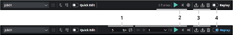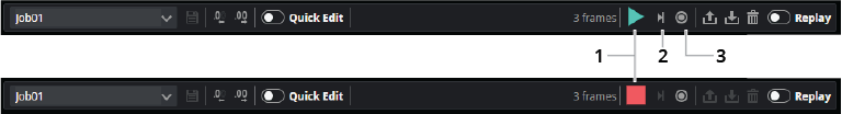 The global toolbar with Replay disabled (top) and enabled (bottom)