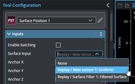 When you record data with output recording enabled for any of the tool's outputs, the resulting replay data will contain the scan data coming from the sensors, but also the tool's output data. Once you've downloaded this replay data and uploaded it to a sensor or PC instance of GoPxL, both sources are available in a tool's input.